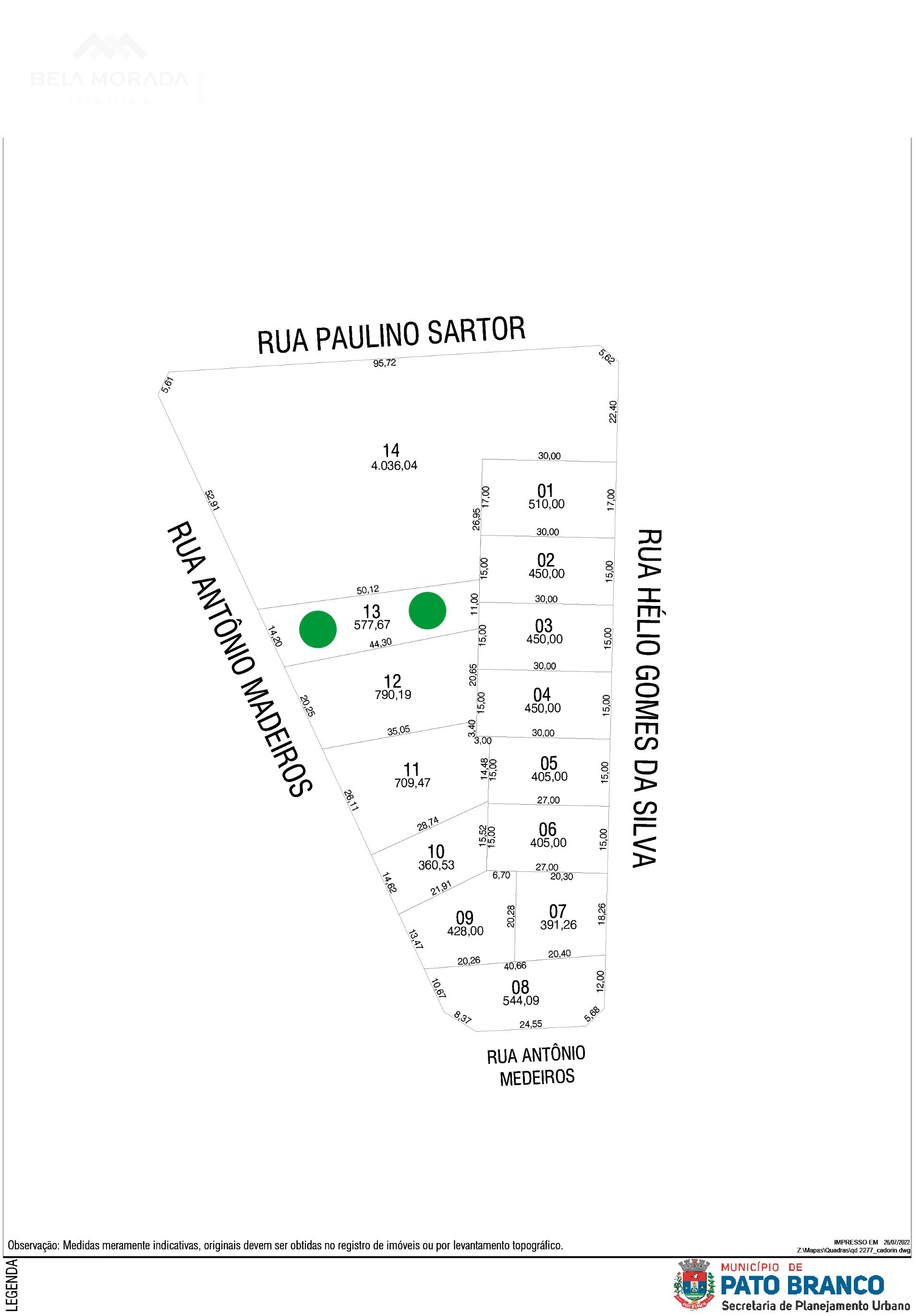 LOTE A VENDA NO BAIRRO CADORIN - 577,67 M -